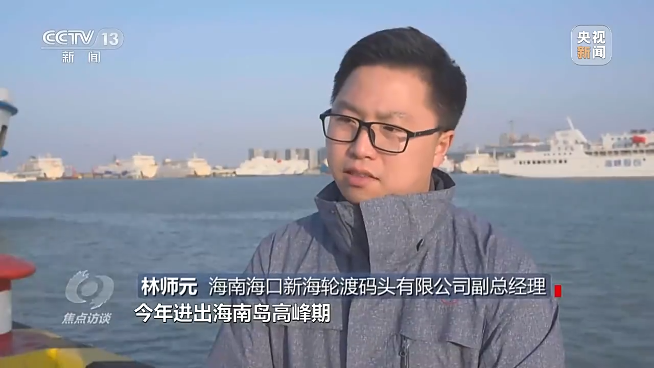 海南海口新海轮渡码头有限公司副总经理 林师元:今年进出岛高峰期在春运的第三天就已经出现了。第一个是高峰的前移,第二个是出行高峰的持续性。往年的高峰持续也就是春节前以及春节后返程集中在几天之内,但是目前来说整个春运期间高峰已经维持了大概20天左右。