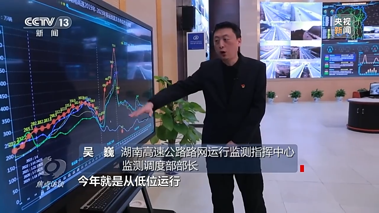 湖南高速公路路网运行监测指挥中心监测调度部部长 吴巍:与往年不同的是,今年从低位运行快速直接拉升到满负荷运转状态,直接跳空,日均达到300多万辆。大年初六,湖南高速路网通行创了历史新高,达到715.6万,与去年相比同比增长了30%以上。