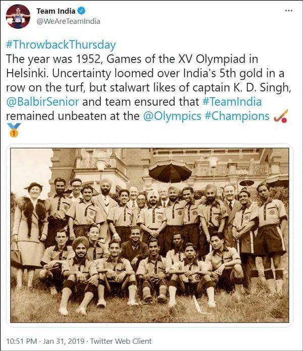 印度自己的奥运代表团2019年时还在不断回味1952年的男子曲棍球金牌。