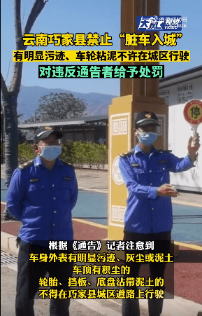 3月23日,云南省巧家县融媒体中心发布《关于加强脏车出入城综合治理的通告》,引发网友热议。 根据《通告》,记者注意到,车身外表有明显污迹、灰尘或泥土,车顶有积尘的;轮胎、挡板、底盘沾带泥土的;不得在巧家县城区道路上行驶。对此,有网友称“如果免费洗车,我觉得无可厚非,要是收费的话,那就引人深思了”,还有网友表示“车脏了没事,心脏了就不好了”。
