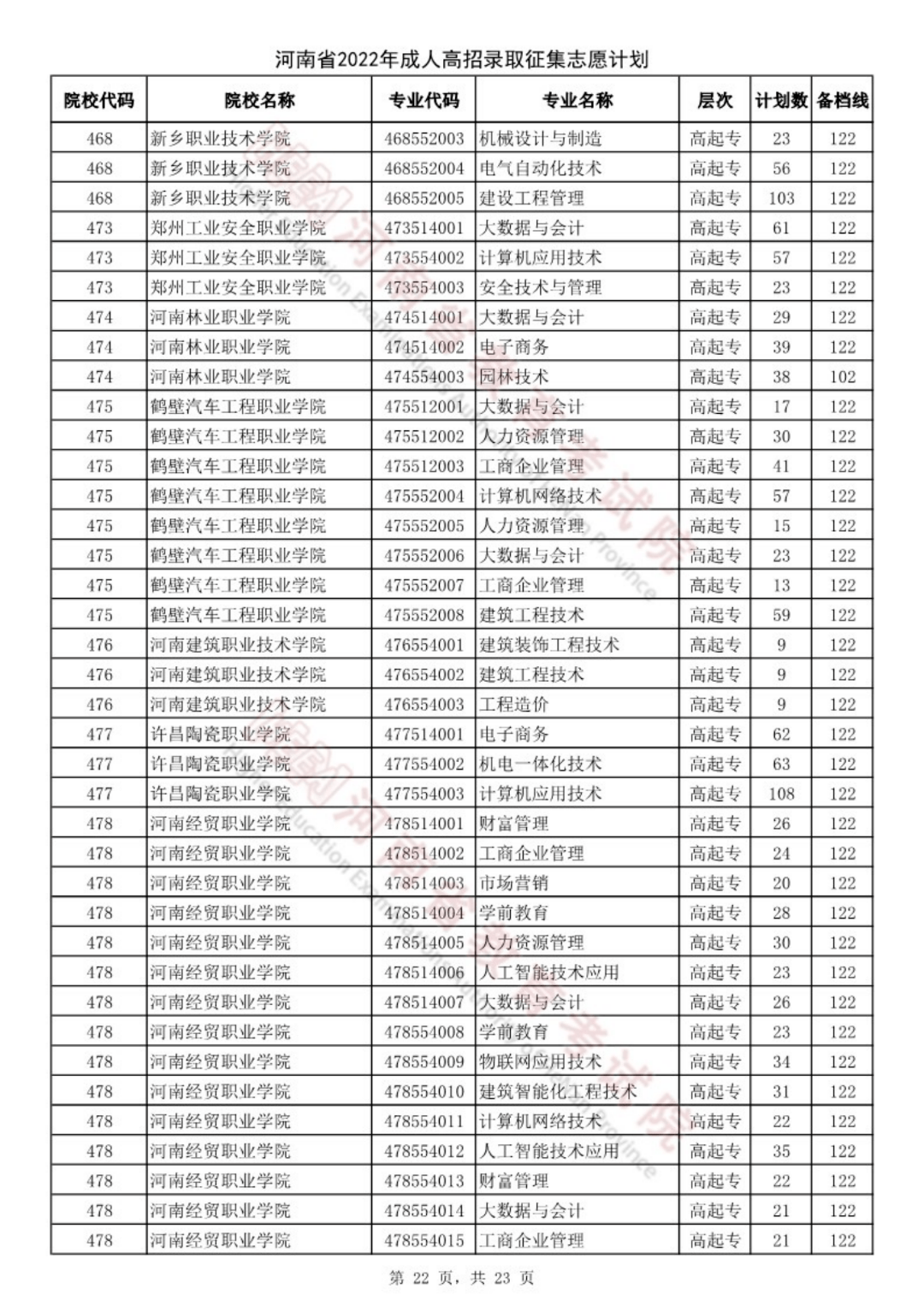附件: 河南省2022年成人高招录取征集志愿院校分专业名单