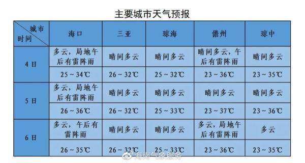 记者今天上午从海南省气象台了解到,清明节期间(4月4日—6日),海南全岛以多云间晴天气为主,北半部局地有雷阵雨,并伴有短时雷雨大风等强对流天气,气温较高。4日—5日西北部地区将出现35~38℃的高温天气,其余地区32~35℃。6日全岛最高气温32~36℃,最低气温全岛大部分地区22~25℃。户外活动请注意防暑降温,防备雷电灾害;海南岛西部局部地区森林火险等级较高,相关部门需加强巡查,防范森林火灾事故发生。