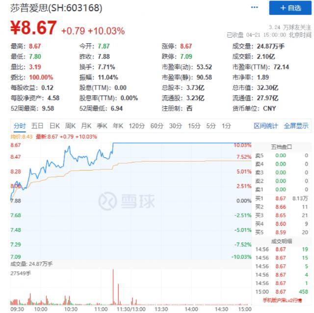 4月21日收盘,拓新药业大涨12.78%,华润双鹤强势涨停。