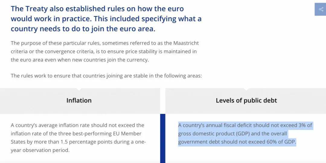 不仅如此,根据欧洲中央银行(ECB)官网对《马斯特里赫特条约》的介绍,“一个国家的年度财政赤字不应超过GDP的3%,政府债务总额不应超过GDP的60%。”这里的债务比重上限只能参考“政府债务总额”,但立陶宛银行给出的债务额度指的是立陶宛政府、立陶宛银行、债务公司和其他行业的所有外债。
