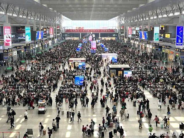 其中 上海虹桥火车站直接发布公告,表示4月28日发往全国各站车票均已售完。这也是上海站今年的单日客流高峰,预计发送旅客55.8万人次,其中上海站18.0万人次,上海南站6.9万人次,上海虹桥站30.9万人次。