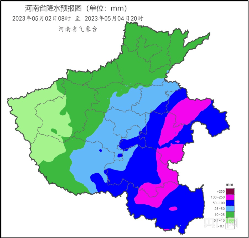 河南省5月2日至5月4日降水预报图(央广网发 图片来源于河南省气象台)