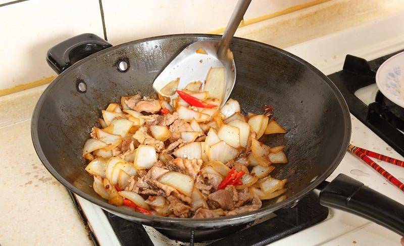 最后将肉片倒入,加入少许辣椒片,快炒均匀即可。