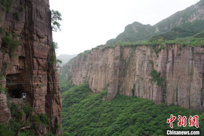 图为游客行走在郭亮村挂壁公路上。 韩章云 摄