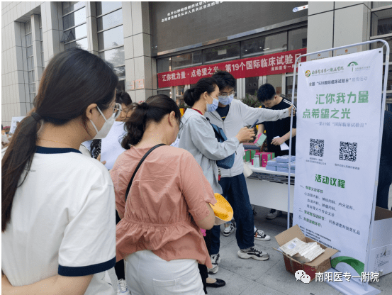 2023年5月20日是第19个国际临床试验日。为增强公众对临床试验的认知度和认同感,推动临床试验的高质量发展,5月20日上午,南阳医专一附院临床试验机构在一号病房楼前举办国际临床试验日主题宣传活动。