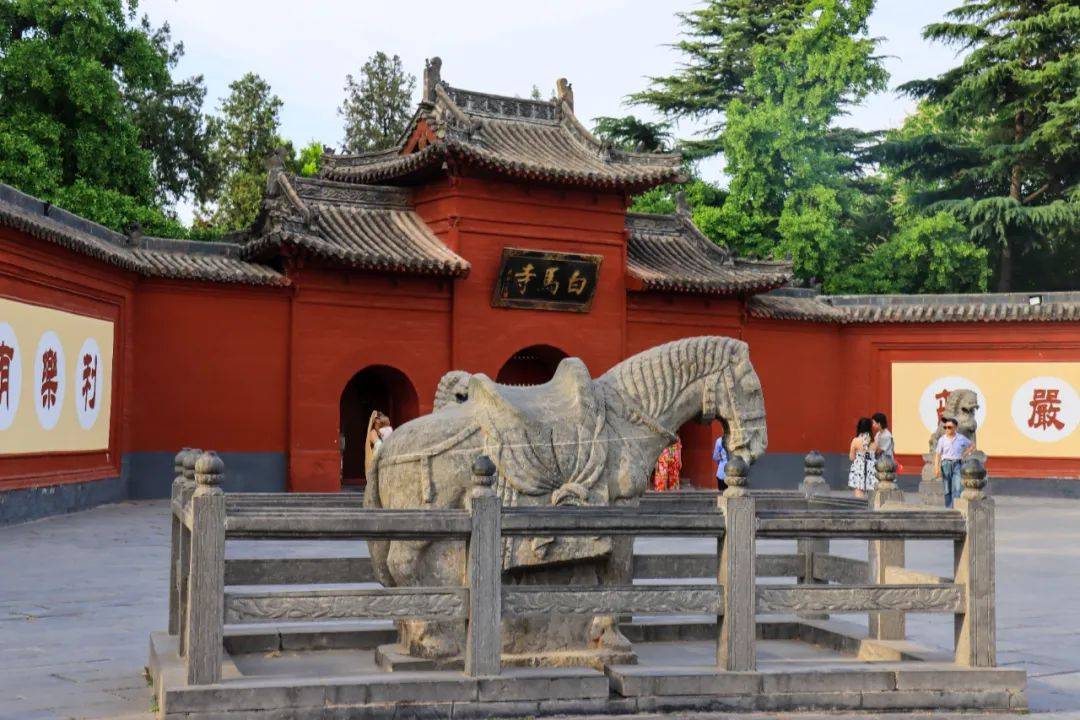 PS:白马寺是中国第一座真正意义上的寺院,东汉永平七年汉明帝遣人远赴天竺求经,永平十年使者带着两位印度高僧用白马驮着经书返回洛阳。