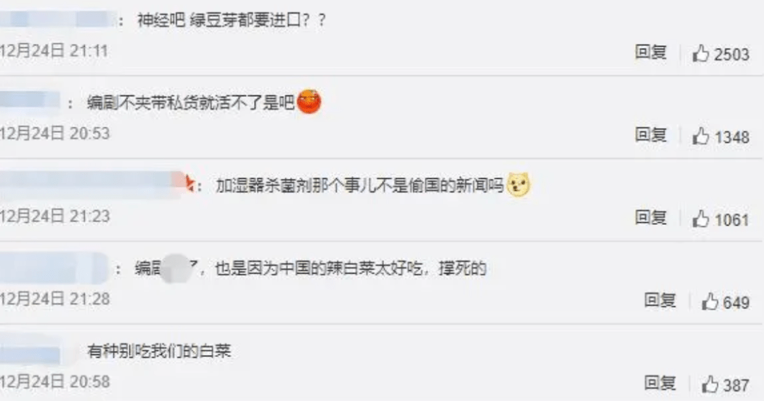 还有韩剧《酒鬼都市女人们2》中,当主角在超市买到不新鲜的豆芽时,一看见原产国是中国时,立刻嫌弃地将其丢到地上。