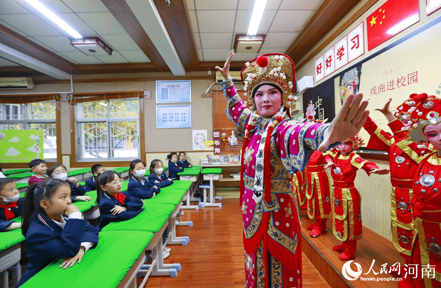 人民网郑州6月6日电(霍亚平)“刘大哥讲话理太偏,谁说女儿不如那儿男……”近日,在郑州市二七区淮河东路小学教室里,戏曲老师耐心地一句句地教孩子们学唱,孩子们每个动作都模仿得惟妙惟肖。戏曲老师精心的装扮,色彩靓丽的服装,响遏行云的唱腔,为学生们打开了一扇感受戏曲艺术魅力的窗口,让学生近距离感受了传统艺术的魅力。