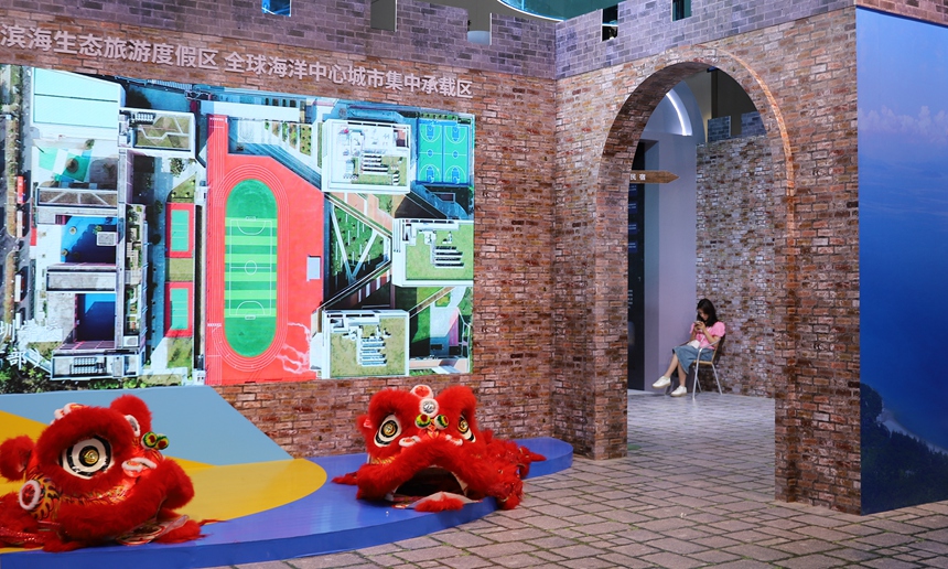 大鹏新区展馆内,大鹏所城元素非常显眼。曹欢庆摄