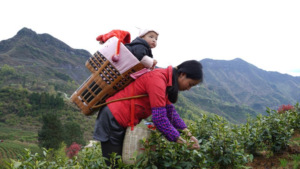 湖南省古丈县默戎镇翁草村村民采摘新茶