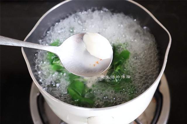 放入小半勺猪油,调入盐调味即可出锅。