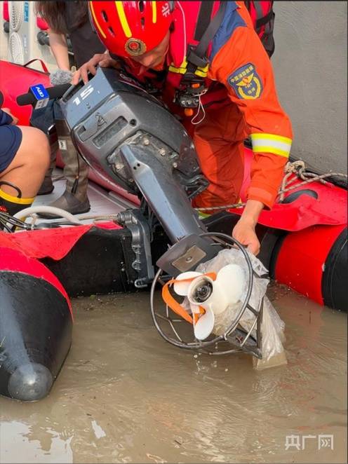 陈杰说:“遇到的困难主要是伴随着很多杂物,比如废旧的塑料袋会憋停我们的螺旋桨,还有一些尖锐的物品也会影响救援的进度,因为它会划破橡皮艇,造成危险。到现在转运了130多人,被困的群众基本上转运完毕了,还有一些比较偏僻的房间,我们正在进行搜索。”