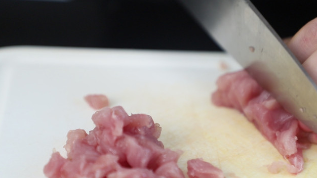 3.100克猪肉切丁。