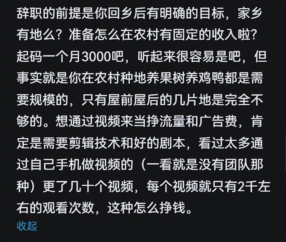 农村资源的匮乏是现实的老大难问题,而且回农村就业,实际上很辛苦,也并不只是仅考虑种植那么简单。