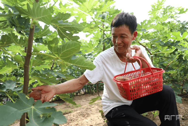 园区负责人王战胜为游客采摘无花果(央广网发 李治齐 摄)