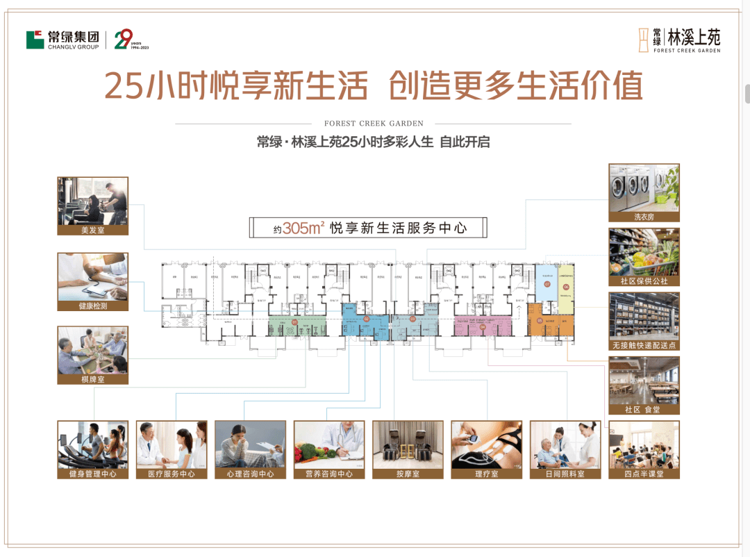 社区内打造3.5米高精装入户大堂,充满格调的空间,感受品质生活的细节表达;9#楼一层打造约305㎡的大尺度25h悦享新生活中心,分别设置健身区、社区食堂、四点半课堂、健康体检、美容美发区、理疗室等多功能生活场景,满足各个年龄段业主的邻里社交需要。