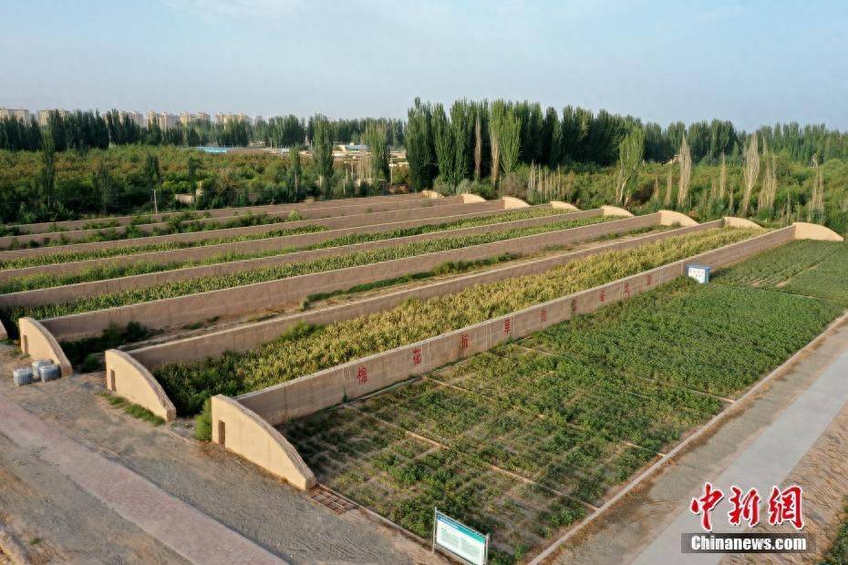 9月7日,航拍新疆阿克苏库车市现代农业科创中心内的试验田。该中心汇聚中国科学院沈阳所、新疆农科院、宁波市农科院等科研力量,建成棉花种质资源库,打造棉花分子育种与检测实验室,以及建立西北农林科技大学苹果联合会专家工作站等,助力农业高水平发展。(无人机照片)