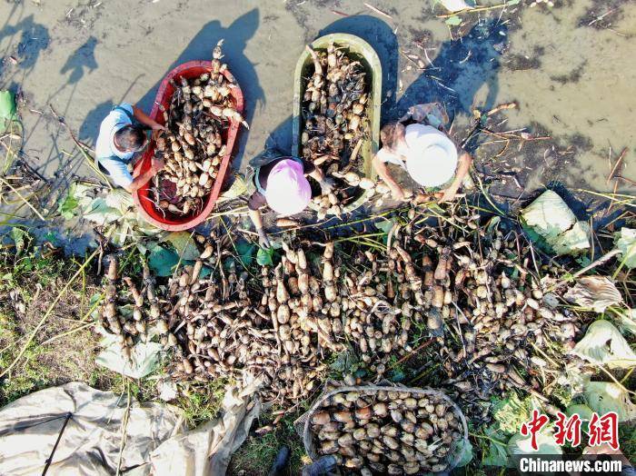 白露时节,在河南南阳镇平县中原荷花博览园万亩莲藕基地,藕农身着防水衣,在水中仔细摸索,将一根根莲藕“揪”出泥潭。挖藕、冲洗、分装、运输,藕农们分工明确,整个基地呈现出一派繁忙景象。