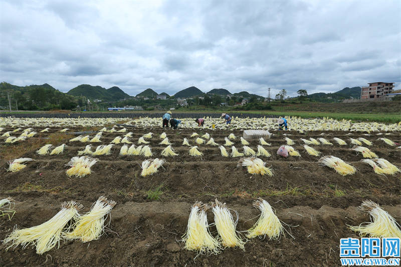 “今年雨水好,韭黄整体长得非常好,迎来了丰收,亩产达到1500斤,按收购价1.8元每斤算,只是一茬就可以收到2700元,一年可以采收三茬,这样算下来每亩有7至8千元收入,比种传统农作物收益高多了。”在采收现场,“反租倒包”村民俞文泽说,种植过程中有贵州两山民润农业开发有限公司提供技术指导和负责收购,不用愁韭黄卖不出去,他只用管种好这50亩地的韭黄就有钱赚,让他放心也省心。