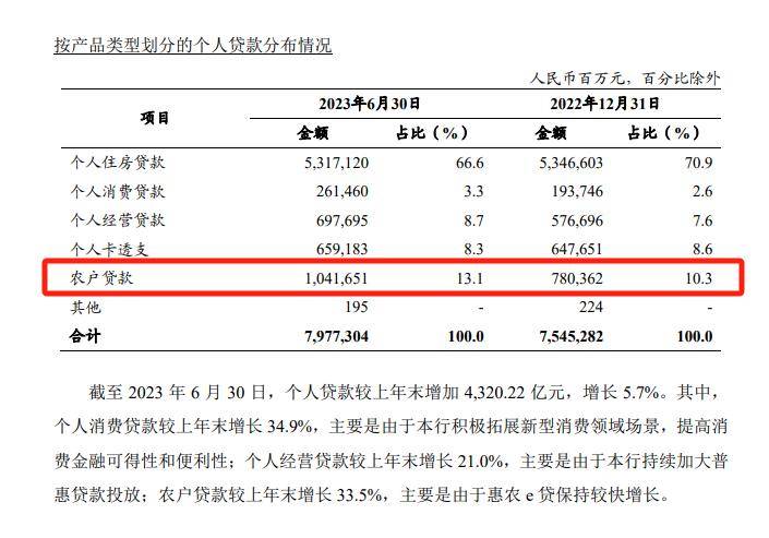 这里提到的“农户贷款”,具体是指什么?BT财经查询发现,据农业银行财报披露,农户贷款是其个人贷款业务重要的组成部分,且增长迅速。