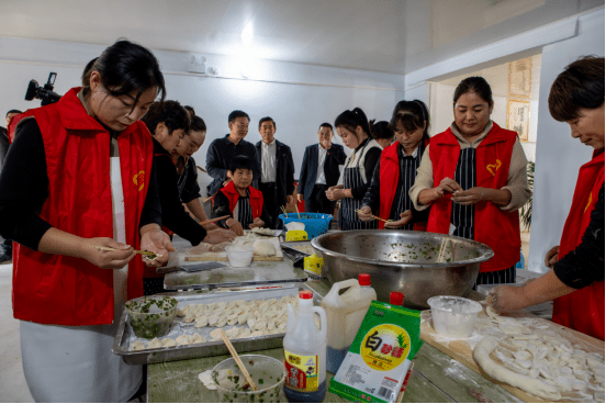 “包饺子啦!”志愿者们分工明确,拌馅、和面、擀面皮、包饺子,一边煮饺子,一边又为老人们炒了鸡块、猪肝、豆腐等几道家常菜,大家齐心协力一起动手,很快,一份份香喷喷的饭菜就送到了老人们的手中。