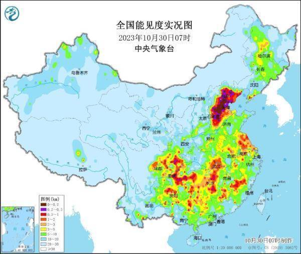 昨日,河北大部、北京、天津、山东北部、河南东部、湖北东部及吉林中西部、黑龙江西南部等地出现轻到中度霾天气,局地重度霾。今晨,北京、天津、河北东部和中南部出现能见度不足1公里的大雾,部分地区能见度不足200米。