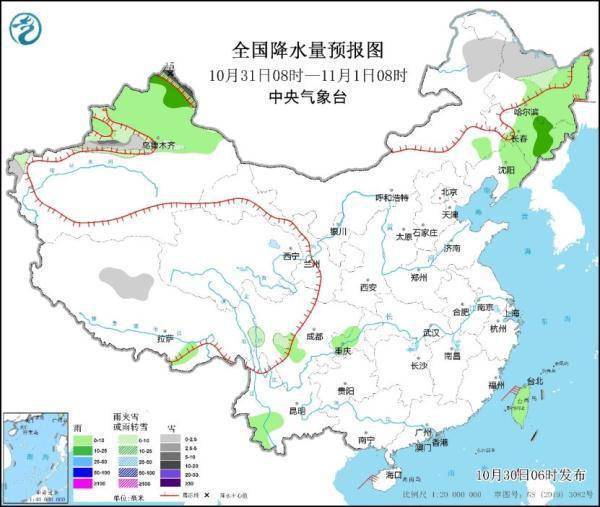 预计未来三天,新疆北部多雨雪天气,高海拔地区有小到中雪或雨夹雪,阿勒泰北部有大到暴雪;内蒙古东北部、黑龙江西部、吉林西部等地有小雪或雨夹雪天气,局部有中到大雪。