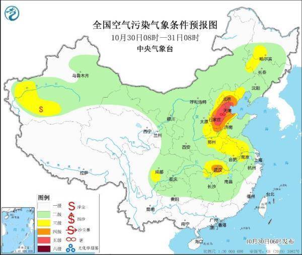 预计10月30日至11月2日,华北中南部、黄淮西部等地大气扩散条件仍较差,有轻到中度霾天气,华北中南部等地的部分地区有重度霾。11月2日夜间起,受冷空气影响,上述地区大气扩散条件逐渐转好,霾天气减弱消散。