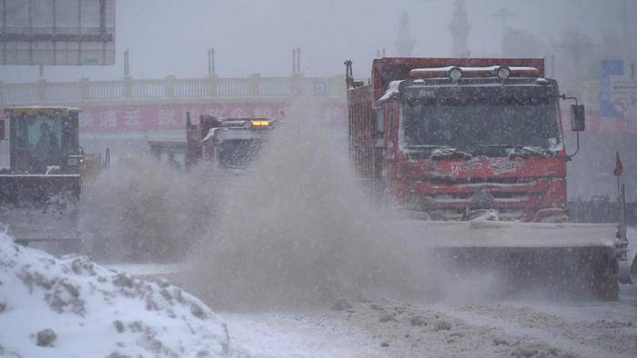 各地市主城区采取大型清雪车辆和环卫人员联合作业,确保交通干道、政务通道、重要商圈雪停路净。