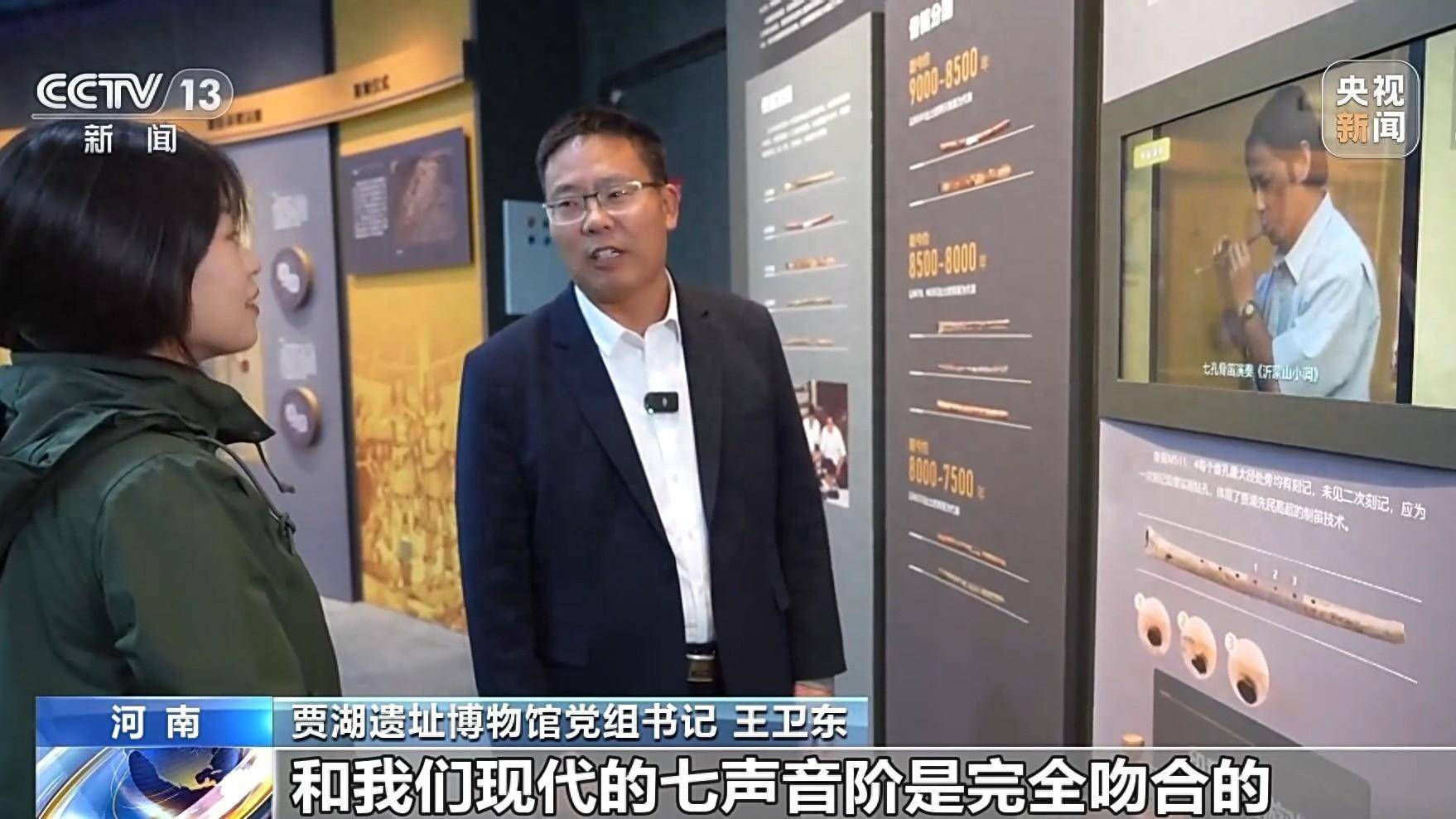 贾湖遗址博物馆党组书记 王卫东:它的音色、音准、音程、音高和我们现代的七声音阶是完全吻合的,我们现在通过穿越时空隧道和先民进行一次精神的交流。