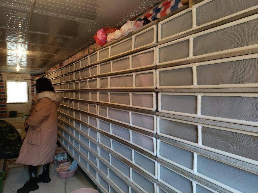 在厂房内,放置着6排2米多高的水泥架子,每个架子从上到下排满了一个个方形抽屉,每个抽屉里大约有120只蜗牛,都是白玉蜗牛的“家”。一只只白玉蜗牛,伸着洁白的触角,慢悠悠地爬来爬去,这小小的蜗牛可是时章付增收致富的宝贝疙瘩。