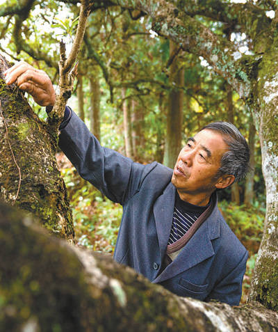 在位于浙江仙居古杨梅群复合种养系统核心区的横溪镇程岙村,梅农正在对古杨梅树进行日常管护。 窦瀚洋 冯宇航摄影报道