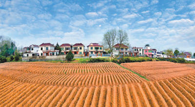 根据土质条件和气候要求,铜陵姜农通过整高畦、踩姜垄的方法对姜田进行整理。图为铜陵姜田里的高畦高垄。 刘荣胜摄(人民视觉)