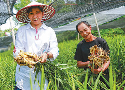 地处安徽铜陵白姜种植系统核心区的大院村,现有白姜种植面积400多亩,培育出多个白姜名品牌。图为大院村生姜种植基地,姜农喜获丰收。 陈 磊摄(人民视觉)