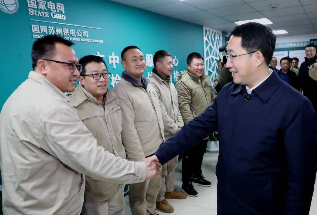 在国网苏州供电公司市中供电服务中心狮山运检抢一体化驻点班,吴庆文详细听取电力调度情况,要求优化电力资源调度,确保城市运行安全有序。吴庆文感谢一线电力抢修人员的辛勤付出,叮嘱大家做好防护工作,保障自身安全。
