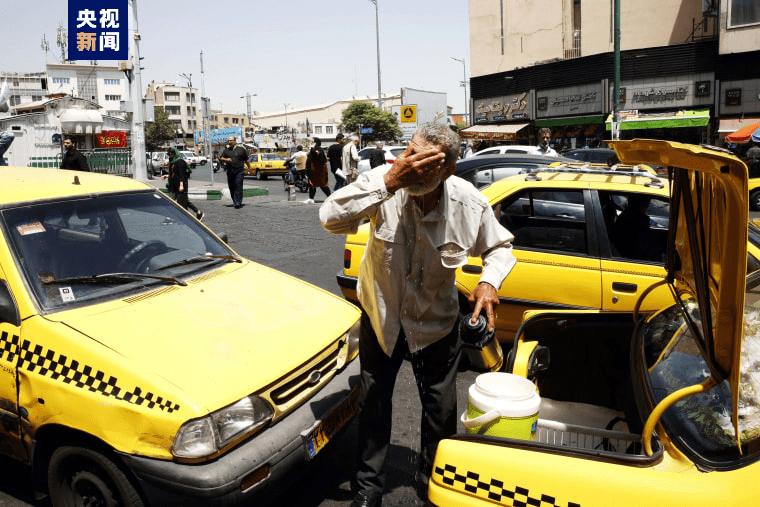 △一名伊朗出租车司机在德黑兰街道上取水解暑