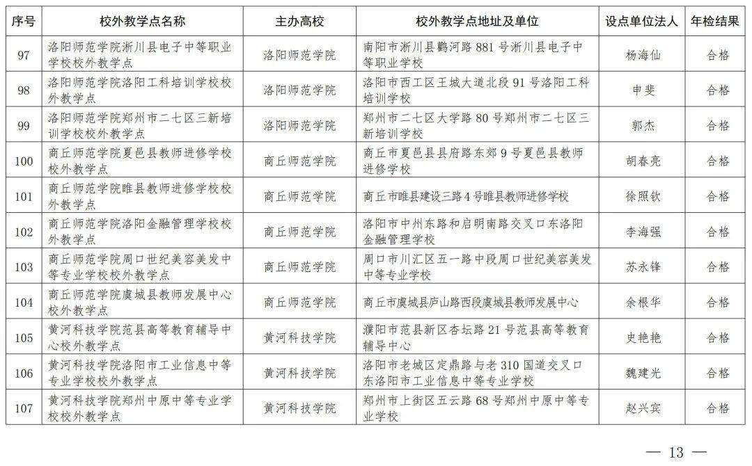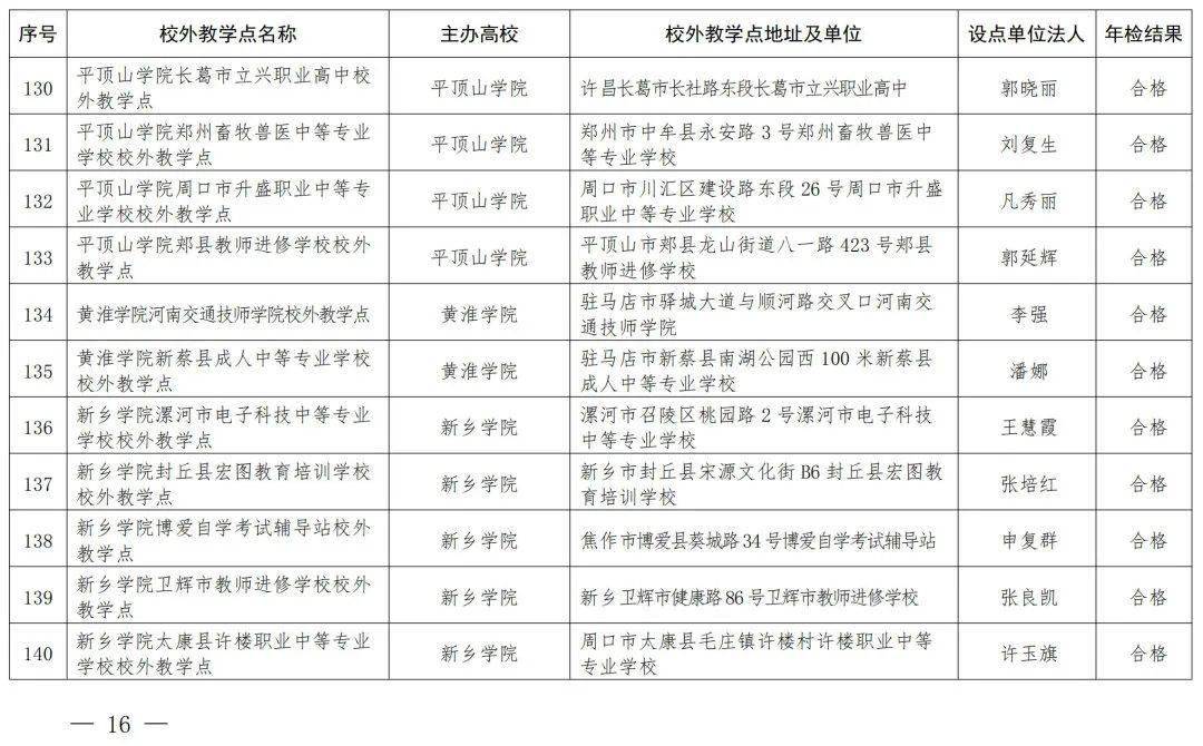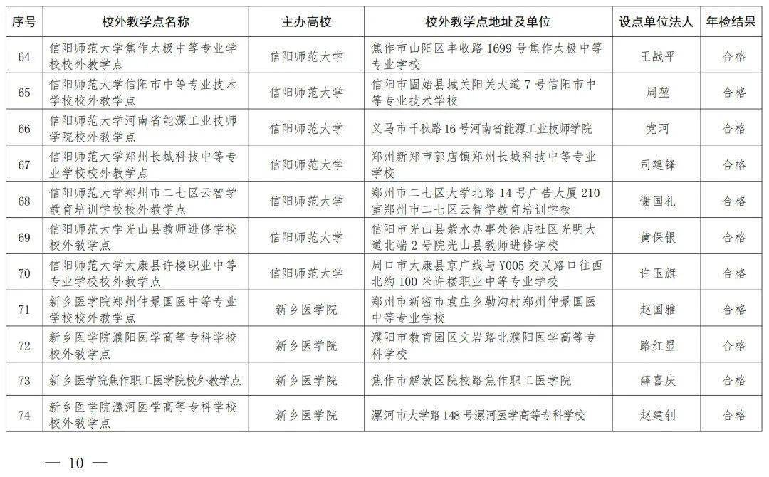 河南省教育厅办公室关于公布2023年高等学历继续教育校外教学点年检结果的通知