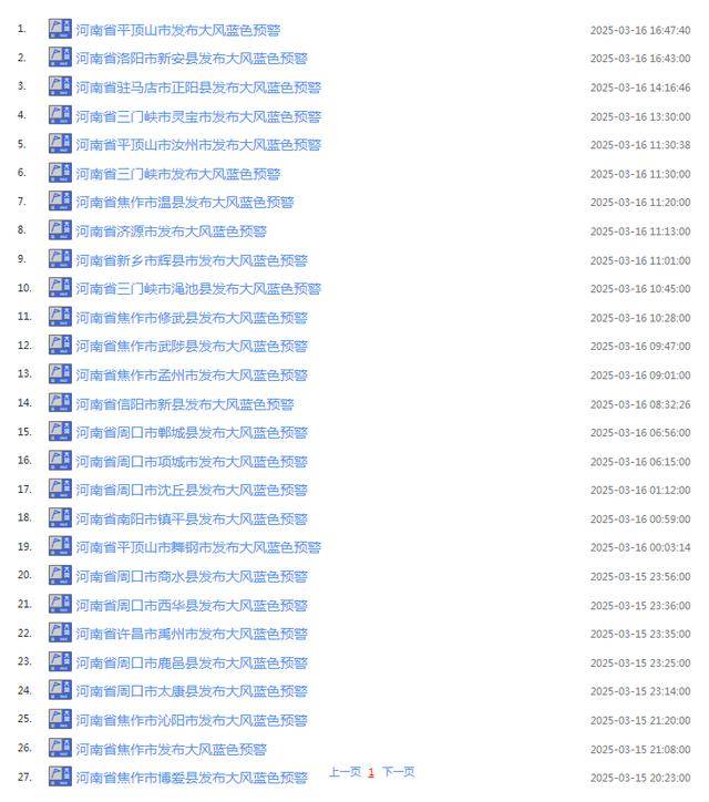 据预报显示,接下来的一周,我省晴朗是主旋律,同时气温也将逐渐回升。但另一主角“大风”也是十分抢镜,全省大部以4级左右偏西风为主,阵风6级左右。中西部、西北部还会有7到8级阵风。截至3月16日18:55,河南27条预警生效中!