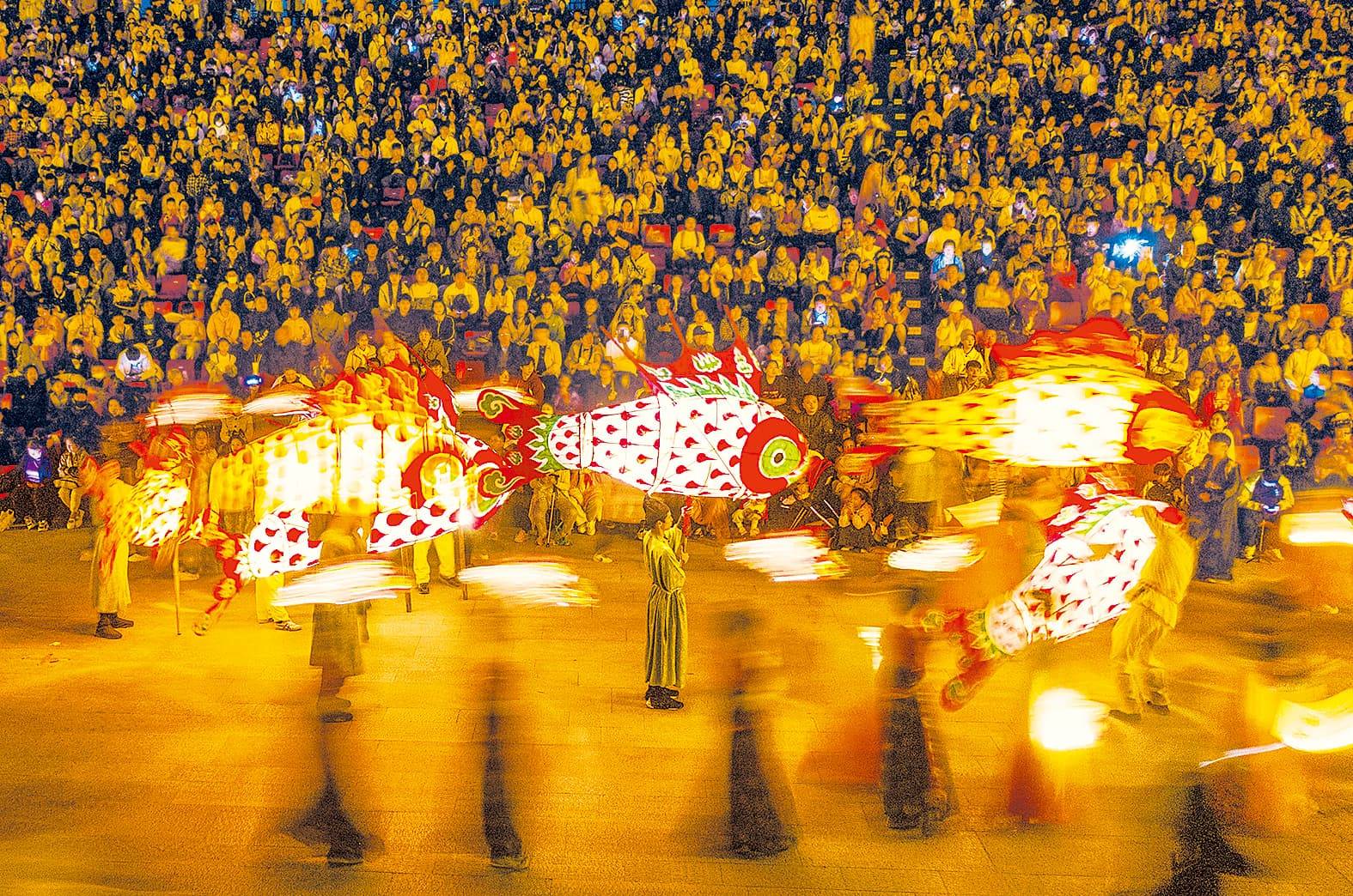 洛阳洛邑古城火爆全网的节目“天女散花”。(王铮 摄)