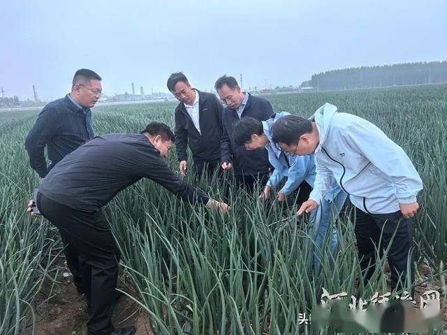 在秦皇岛小江蔬菜专业合作社种植基地,来自河北省蔬菜学会的专家正在察看洋葱长势。河北经济日报记者 吴新光 摄