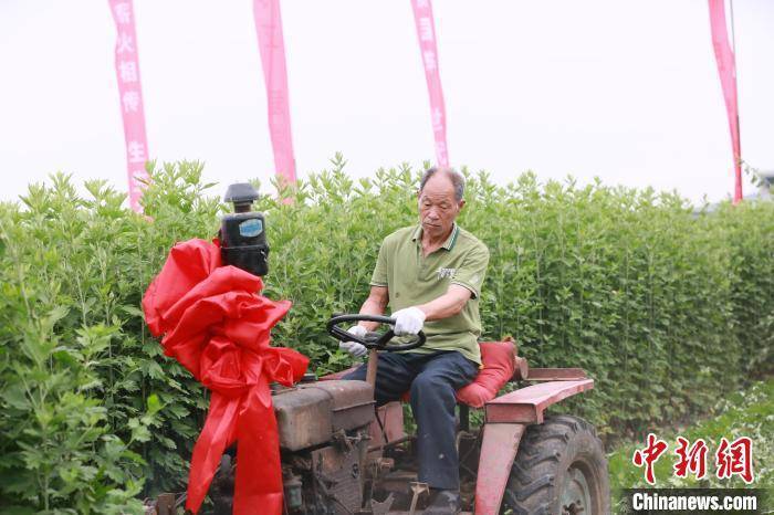 图为收割机正在收割艾草。冯磊 摄