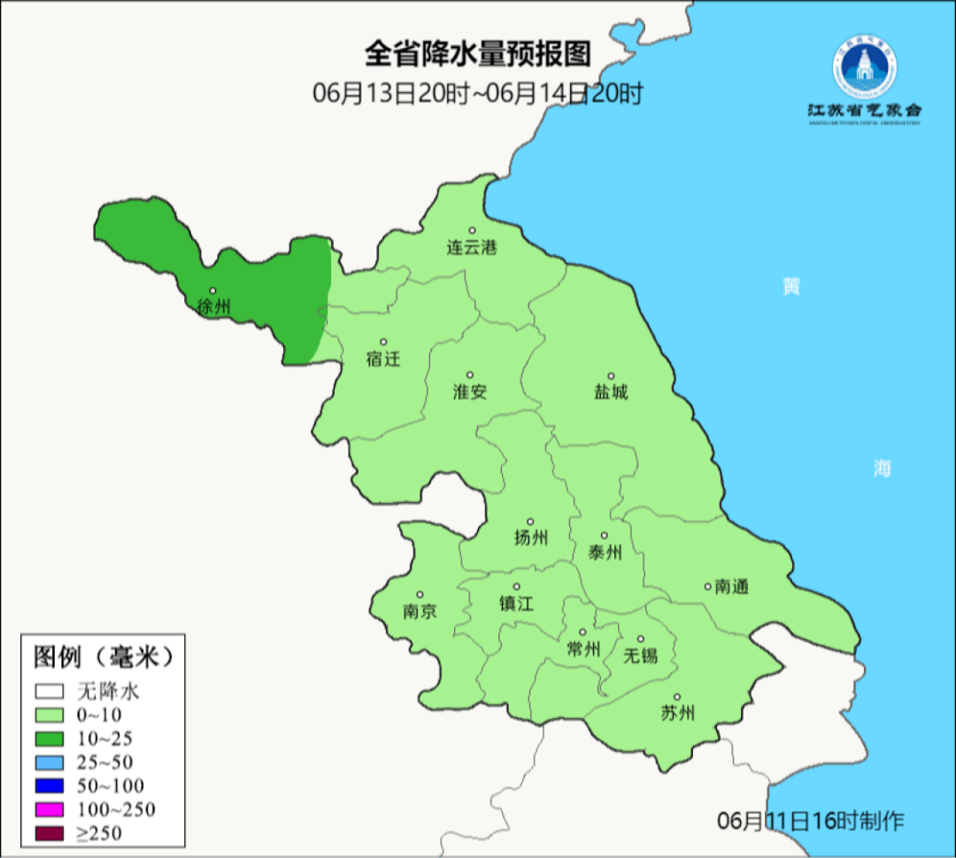 降水预报:11-15日淮河以南地区雨日较多,雨量总体一般,局地降水强度大,并可能伴有强对流天气;淮北地区雨日较少,多局地雷阵雨。
