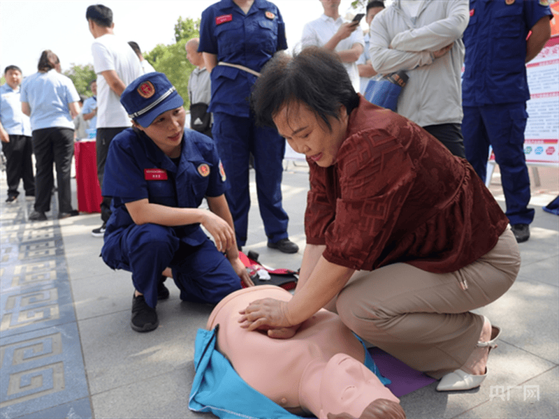 工作人员正在向市民演示急救方法(央广网发 吴双 摄)