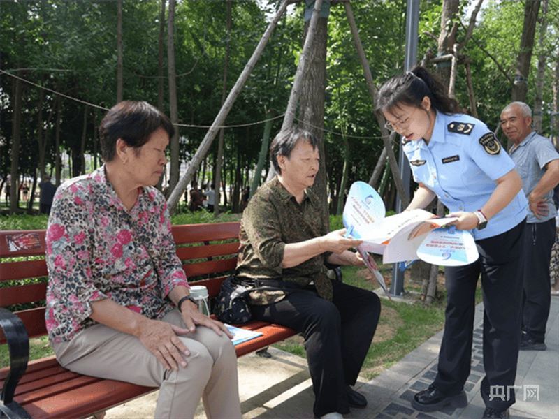 工作人员正在为市民发放安全知识手册(央广网发 吴双 摄)