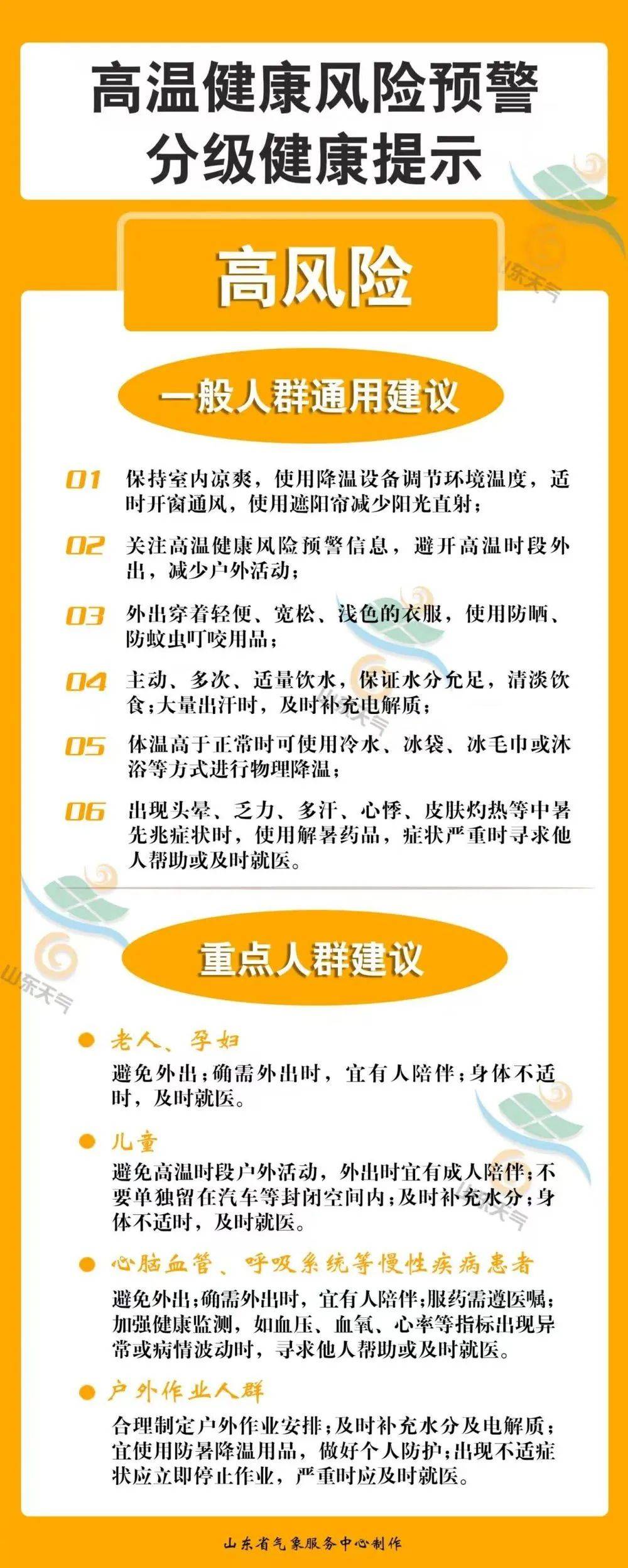 8月2日18时,山东省疾病预防控制局、山东省气象局联合发布高温健康风险预警。