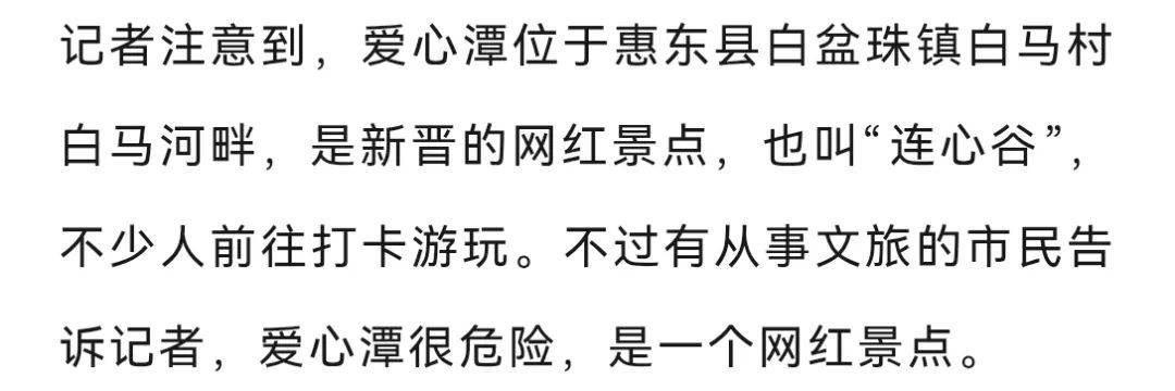 据网传的情况通报显示,8月1日14时许,外地有6人驾车到惠东县白盆珠爱心潭下水游玩。20时许,6人被水冲走,其中1人被困爱心潭一小岛,其余5人失联。当地组织搜救。记者向有关部门求证核实,确有其事。